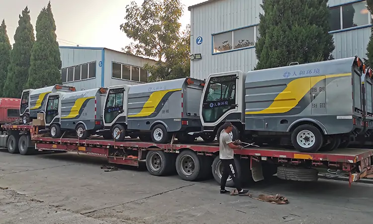 近日發往某環衛公司的四輪多功能高壓清洗車已裝車準備出發